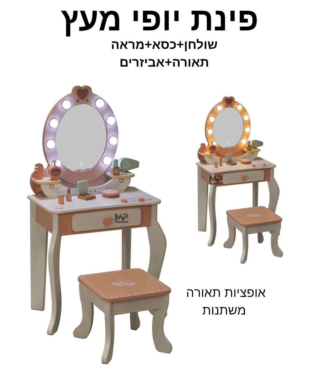 כולל כסא,שולחן,מראה,תאורה משתנה ואביזרים